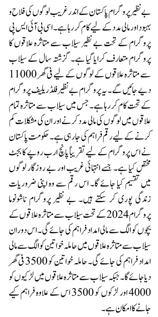 You can complete your registration within the Benazir program to avail this assistance. And get financial support for your family. It should remembered that only those people who have been affected by the flood will be provided the amount of Nashonuma news program 10000. Those who have not suffered any financial loss will not be provided with financial assistance.