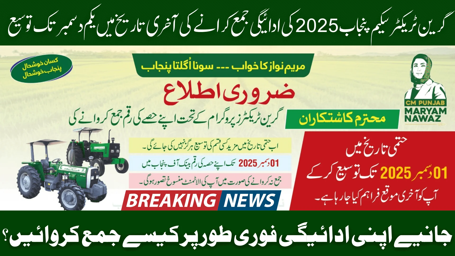 Green Tractor Scheme Punjab 2025 Final Deadline Extended To 1 December For Payment Submission